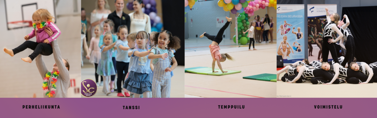 Voimistelu-, temppuilu- sekä tanssityhmissä on mahdollista harjoitella kerran viikossa. Tunneilla harjoitellaan perusliikuntataitoja sekä lajiliikkeitä, kuten kärrynpyöriä, hyppäämistä ja askelsarjoja. Ryhmiä voi yhdistellä ja näin taata lisää oppia ja ystäviä!